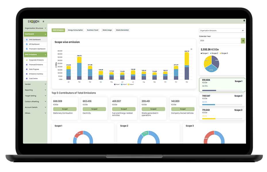 Enterprise SaaS platform for GHG Scope 1-3 emission calculations and ESG reporting.
