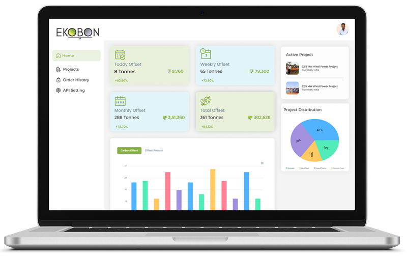 Partner organisations can track the offset history, purchase amount for which offset is done and analyse the API calls on their admin dashboard.